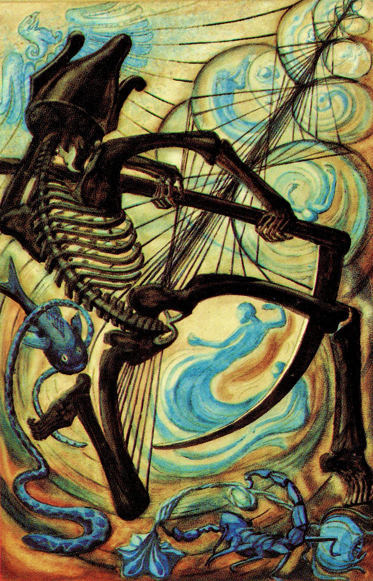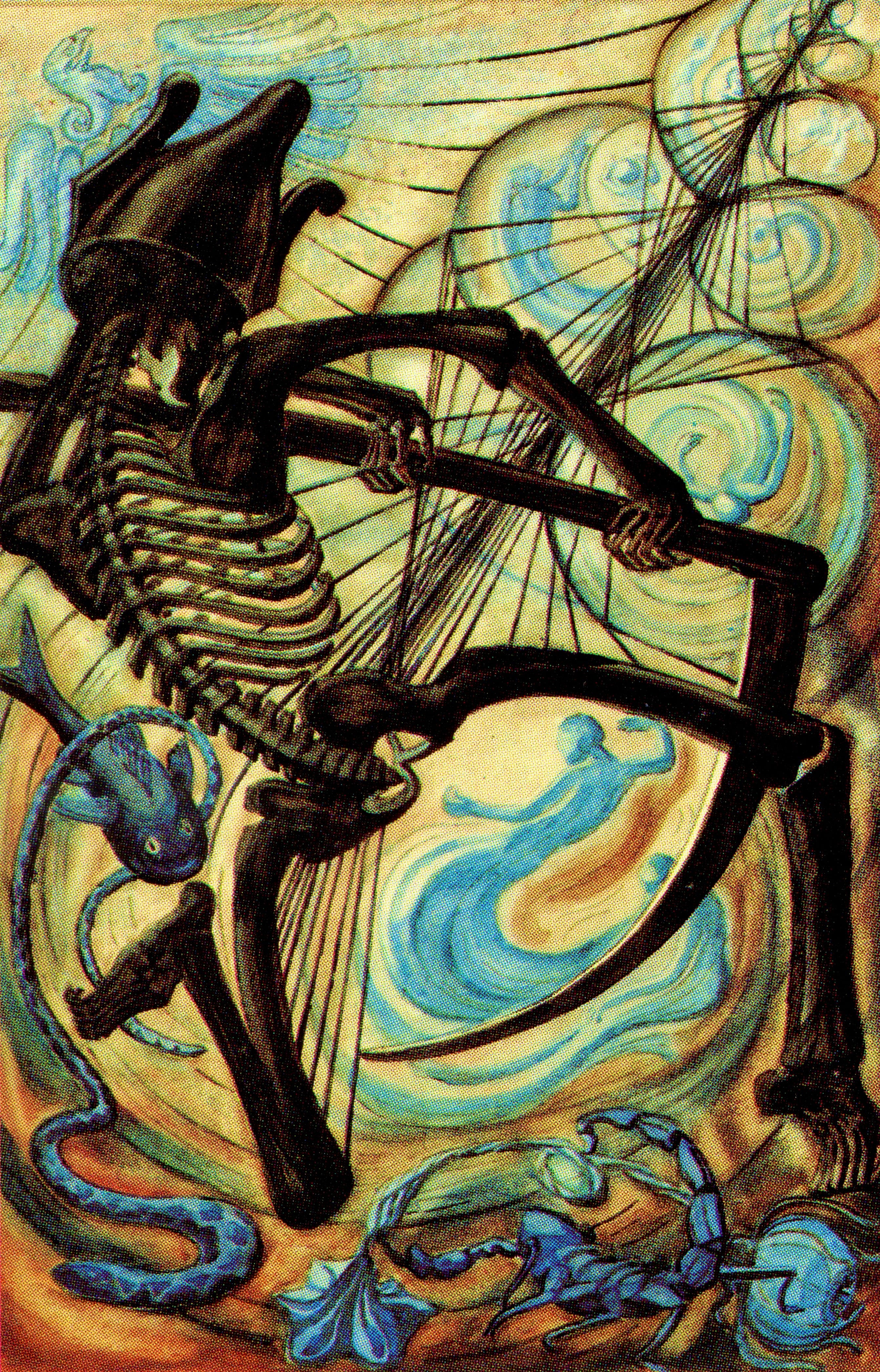 I don’t think I will get to write much more on this transit, though I am feeling some space open for shorter drops of Scorpionic themes. Anyway, it’s good to keep alchemy in mind, specifically the operations of putrefaction and transmutation as illustrated by XIII Death in Thoth Tarot, the trump card attributed to Scorpio, pictured above, showing the three symbols or features of the sign: scorpion, snake, and eagle (or phoenix, if you insist, but note the fluid, spiritualized form). Anyway, dissolution and putrefaction are the necessary steps before any rebirth or refinement can proceed. Take a look at my other Scorpio article for other thoughts on this remarkable upcoming conjunction Nov 7, 2025 between the Sun and Black Moon Lilith. By the time of the exact conjunction, Mars will have moved on. And the Sun rules that 10 degree slice of Scorpio. So yes, Light reigns briefly, promising new life, before descending to Death. The process of spiritual death and rebirth doesn’t happen automatically or easily though; difficult reflection and acceptance are necessary; ritual can help to align with the endeavor, and once it starts it doesn’t go backward (but what does?!). It’s still Scorpio / Death. The Sun descends, the world gets darker, the shadows get longer, the veil gets thinner… and winter hasn’t even started. Alas, forms must dissolve for their essences to be revived from the rot.